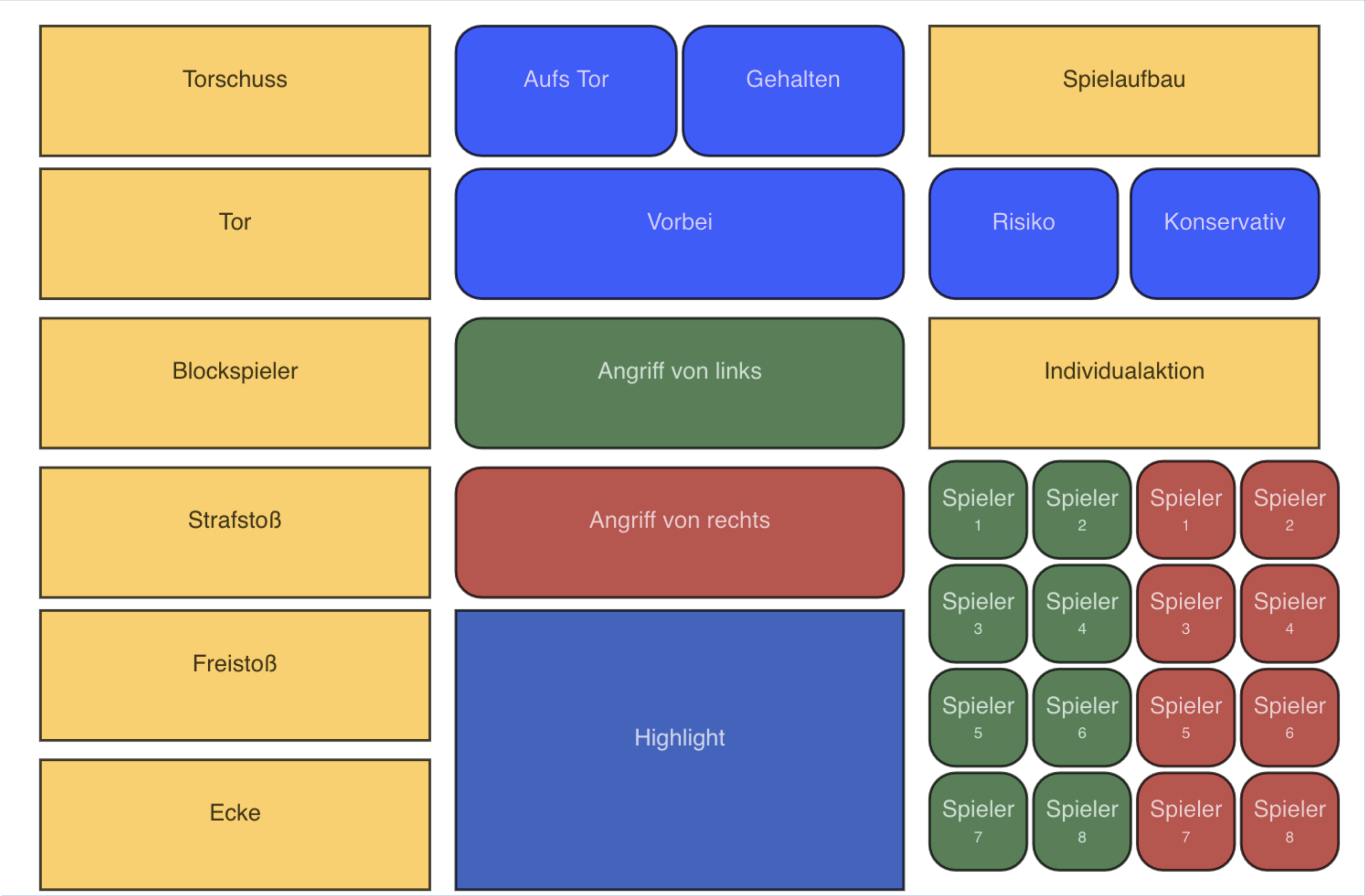 Ein mögliches Schema für eine Mannschaftsanalyse im Fußball könnte zum Beispiel so aussehen: