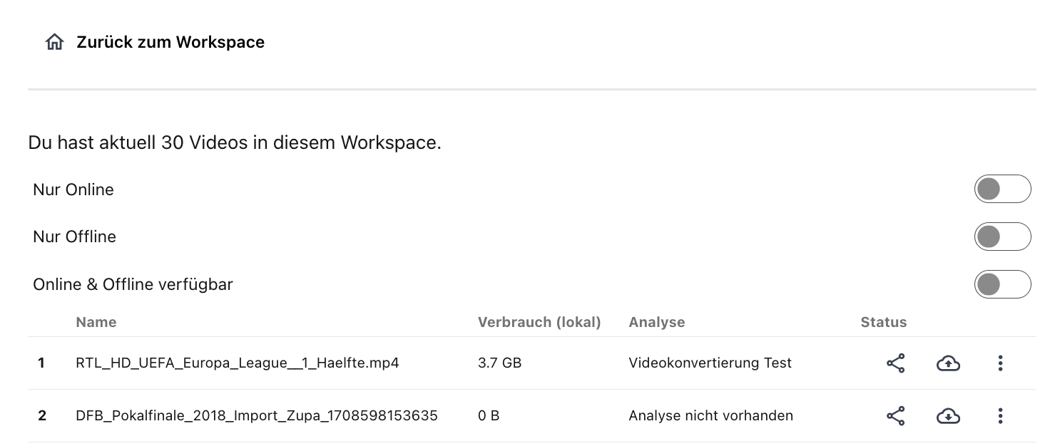 Dieser zeigt Dir alle Videos an, die Du in ATHLYZER hast. Auch aus anderen Workspaces.